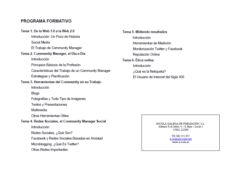 Información del curos