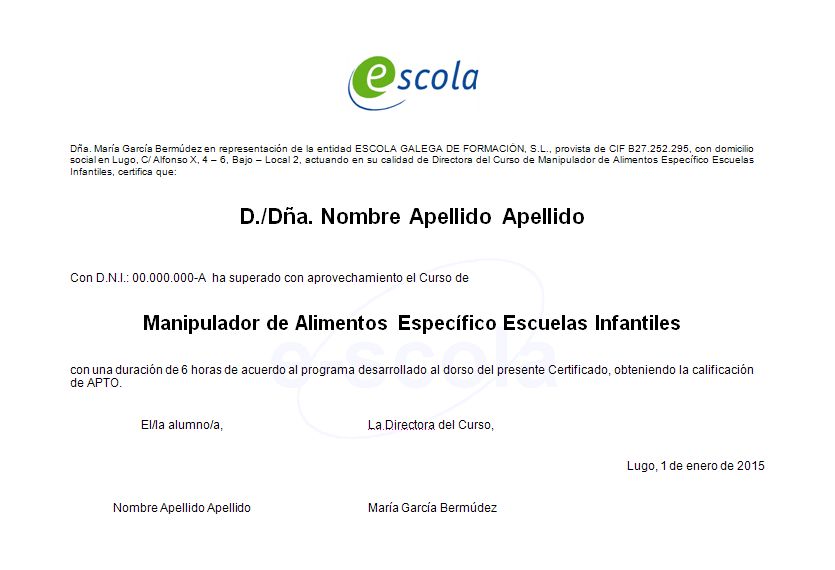 Manipulador de Alimentos Específico: Escuelas Infantiles