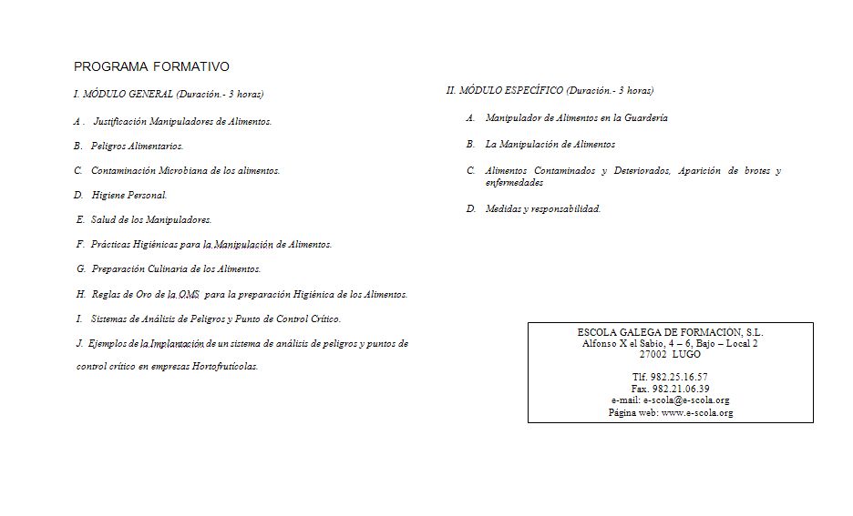 Con esta base han sido regulados los aspectos mínimos de formación que deben manejarse en este ámbito de la manipulación de alimentos y se han establecido las medidas mínimas de formación que debe adquirir toda persona que manipule productos destinados a la alimentación humana.