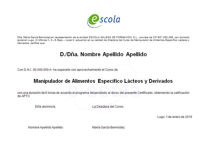 Manipulador de Alimentos Específico: Lácteos y Derivados
