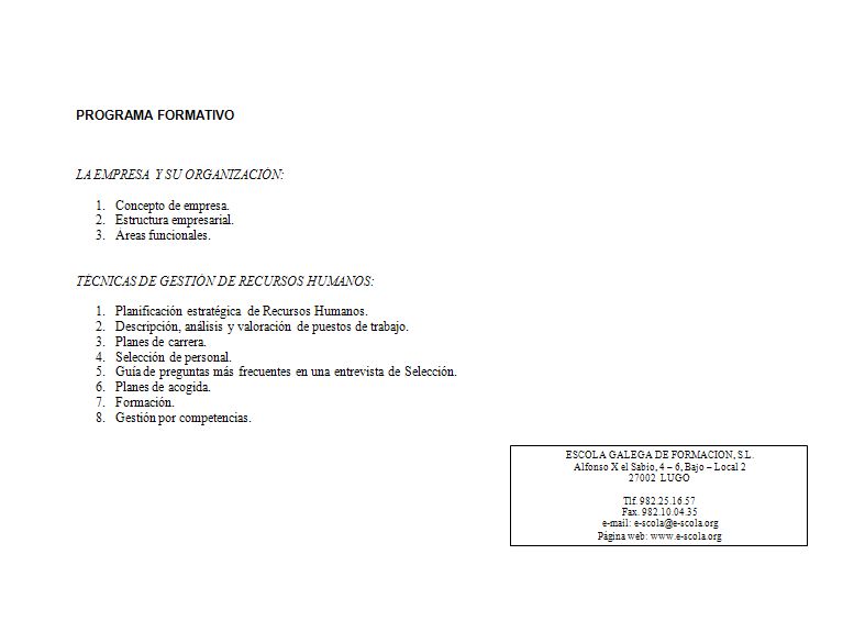 Todas las organizaciones en general, y las empresas en particular, requieren de las personas para alcanzar sus objetivos. De la adecuada gestión de los Recursos Humanos depende el éxito de las organizaciones. Este curso está orientado a proporcionar a los participantes los conocimientos técnicos que les permitan llevar a cabo las diferentes tareas que conforman la gestión de las personas en las organizaciones.